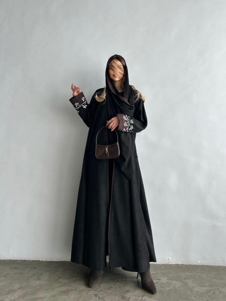 عبايات شتوى سوداء بتصميم جديد من أحدث أعمال المصممة عائشة الحربي ، قطعة فخمة من قماش الشامواه الأسود والجوخ البني على الأكمام بتطريز ناعم منفذ بخيوط بيضاء لامعة لتكون قطعتك المفضلة في أي وقت مع خامة تمنحك الدفء والجمال بسهولة، عباية تمتاز بأعلى جودة وأقصى وقت في التنفيذ لتحصلي على إطلالة مختلفة ومميزة مثل أي دار أزياء عالمية بسعر تنافسي.