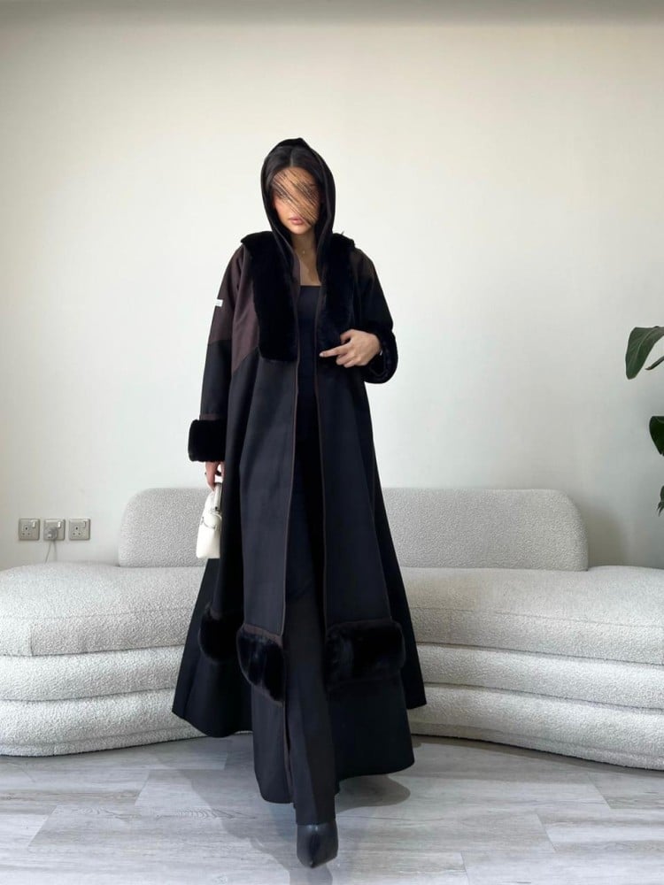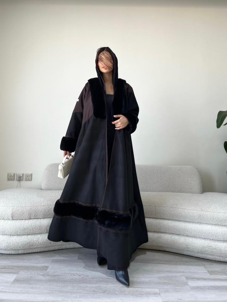 -محدد الفرو بقماش جوخ بني.