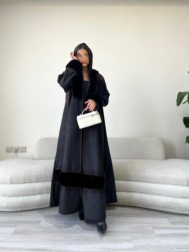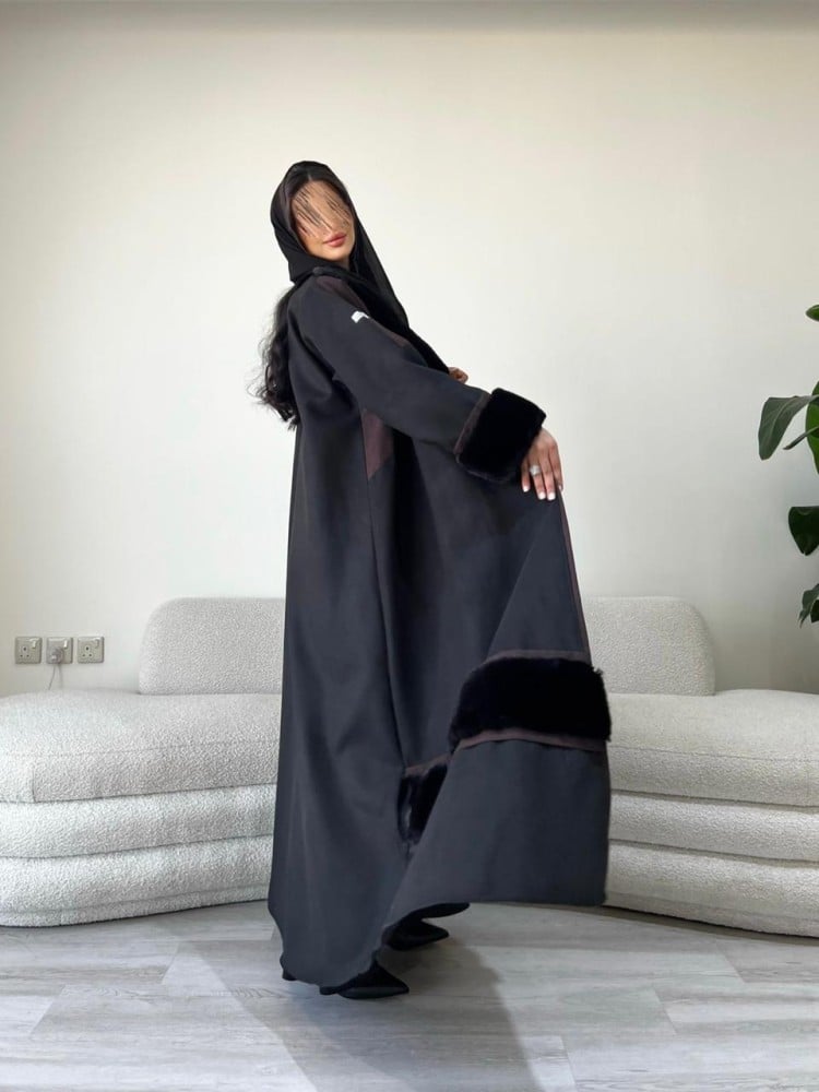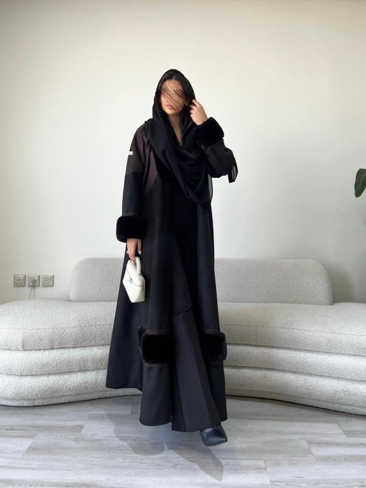 -يوجد طرحة بقماش كوري محددة بقماش الجوخ المستخدم بالعباية.